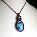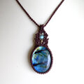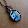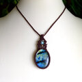 大きめラブラドライト 良質天然石 マクラメ編みペンダントネックレス (男女兼用可アクセサリー)プレゼントギフト 3110