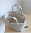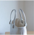 作品が到着いたしました。 優しいラテグレージュ色と細いレザーハンドルが、とても上品でフェミニンな印象の素敵なバッグですね。 季節を問わず活躍してくれる事間違いありません。ありがとうございました。