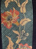 金糸の葉やオレンジの花の刺繍が深緑の地映えて、とても美しい刺繍です。
