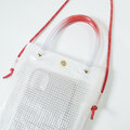 しっかりした素材の格子柄PVCに調節可能なコードがついています。