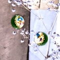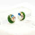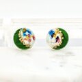 グリーン螺鈿の三日月とかすみ草のラウンドピアスイヤリング【2198】#母の日 面長#ギフト#チタンピアス#イヤリング