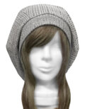 ゆったりルーズ・リブ付ベレー帽◆ランダムリブ織ストレッチコットンニット/杢グレー ◇小顔効果・オールシーズン着用◇