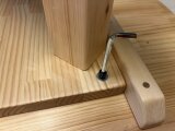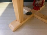 早速据えてみました。 木目が透けて見えるグレイの色も落ち着いた印象で良い感じです。 脚を木製のネジ込み式にしていただけたおかげで、脱着可能な上、足などぶつけてもあまり痛い思いをせずに済みそうで、これもまた良かったです。 ご対応も速く感謝申し上げます。 大事に使わせていただきますので、どうもありがとうございました。