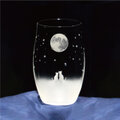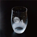 曲線が特徴のスリムなグラスに、満月の夜空を一緒にみているネコたちをサンドブラストで彫刻しました。