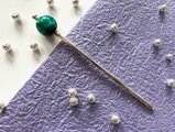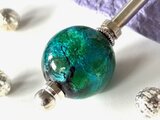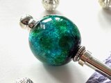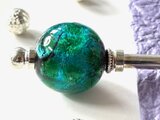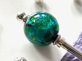 シルバーホイールとブルーとグリーンの水玉のとんぼ玉でかんざしを作りました。