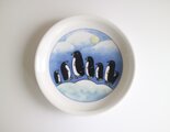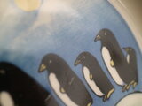 こちらは「Pingviiniperhe ペンギンの家族」というタイトルの作品で、プレートには月夜を見上げるペンギンの家族が描かれています。