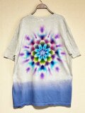 タイダイ Tシャツ XLサイズ 曼荼羅 ヘザーグレー ブルー段染め。