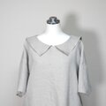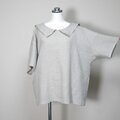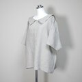 リネン◆ひらっとカラーのロングセーラーブラウス 半袖◆生成り◆フリーサイズ(中厚、リネン100%)