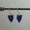 ラウンドカットのラピスラズリをチェーンにとめつけたピアスです。ピアスフック、チェーン、ワイヤーは14KGFを使用しています。小さなピアスになりますので、7枚目の画像でサイズをよくご確認の上、ご検討いただけましたら幸いです。
