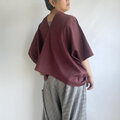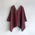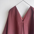 反物を縦に使ったシンプルな四角のシルエットのプルオーバーブラウスです。たっぷりの反物を使い、ゆったりとした幅にしました。少し深めのVネックの襟口は柔らかい生地の裏地をつけています。
