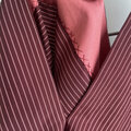 【1点もの】縦づかいのワイドプルオーバー -絹着物 臙脂 縦縞 & 新毛斯 セピアローズ(ヴィンテージ) V-WP610