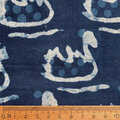 インド ブロックプリント生地 [50cm単位]水鳥 インディゴブルー スワン とり バード 白鳥 藍染 IF0250