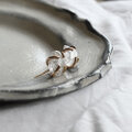 特大のハーキマーダイヤモンドをオリジナルパーツで包んだスタッドピアスです。ポストは14kgfを使ったオリジナル。ゴールドフィルドワイヤーをカドミウム・ニッケル不使用の14金ロウでロウ付けをし、作業で石を包んでいます。