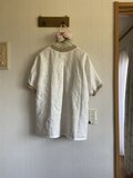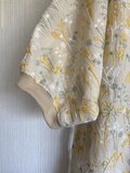 ・素材は綿麻地とリネンで襟周りは綿リブで縫製前に水通ししています。前見頃は全面刺繍が施しているのでシーチング程度の厚さです。
