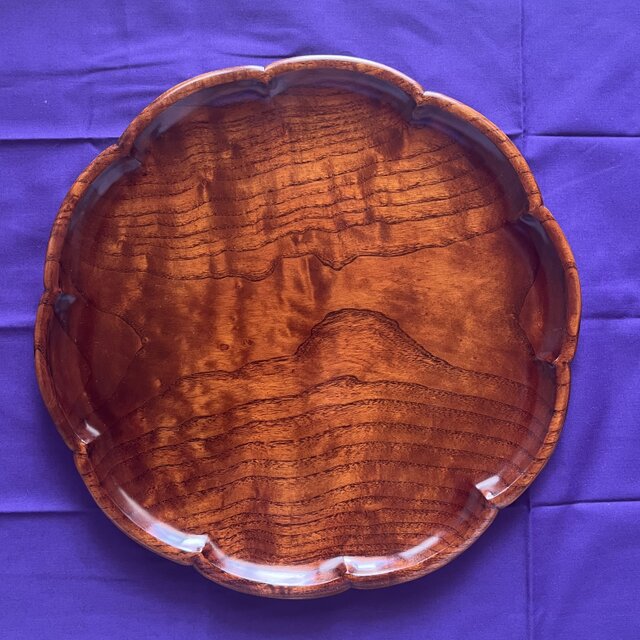 日本産の桑材の一木を刳りぬいてお盆にしました。