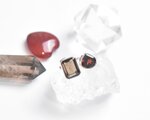 今回このスモーキークォーツに合わせたのが、深紅の輝きを放つガーネットです。