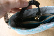 スウェーデン製の糸で手織りし、ポシェットに仕立てました。