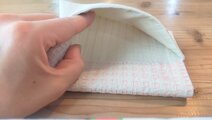 裏地は淡い黄緑色の柔らかい綿の布です。淡いピンクの糸で刺し子をしました。