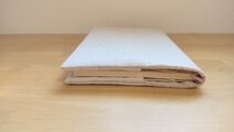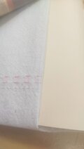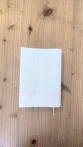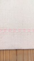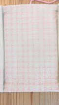 表地は生成(黄色がかった白)でやや粗目のさらりとした手触りの布です。裏地と同じピンクの糸で刺し子をしています。