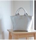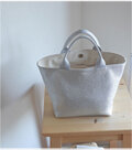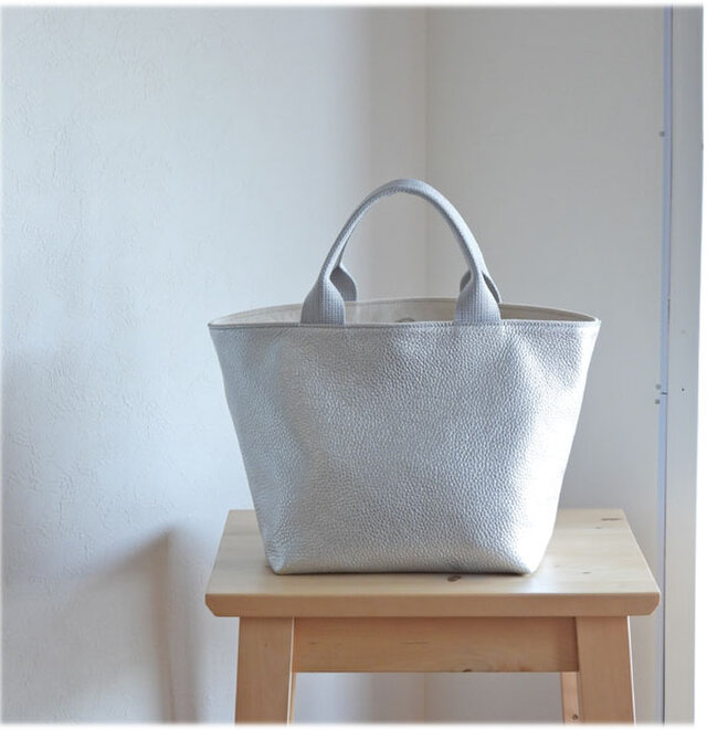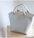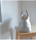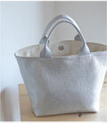作品が到着いたしました。 優しいラテグレージュ色と細いレザーハンドルが、とても上品でフェミニンな印象の素敵なバッグですね。 季節を問わず活躍してくれる事間違いありません。ありがとうございました。