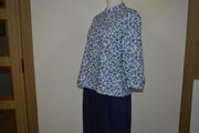 夏の薄手ローン生地(白地にブルー柄)で作りました