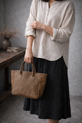 先ほど受け取りました。 ありがとうございます。 程よい皮の光沢、無骨な硬い雰囲気を 持ちながら、とても軽く、 大きすぎず、小さすぎず。 サイズや横長のフォルムなど、 正に探していたトートバッグです! 大事に使わせていただきます。