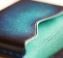 タンニン鞣しのヌメ革を手染めでグラデーションをつけて染めた