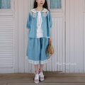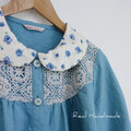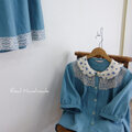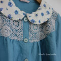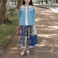 ラスト![予約販売] リバティROSA襟のアイスブルーリネン羽織りブラウス(セットアップ可)