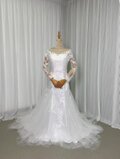 フランス風 ウエディングドレス マーメイドライン トップス ベアトップ 贅沢な総レース 結婚式