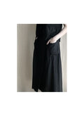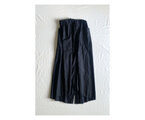 ウエストから緩やかに広がるラインで、20㎝程縫い止めてそのまますっぽり着用いただけるようになっています。一度コートに仕立てたものを解体し作り直しているので後ろにその名残り(スリット)が。ウエスト部分の紐を絞って調整いただけます。裾は切りっぱなしでサイドに四角いポケットが2つ。中にボトムを合わせたりそのままシンプルなTシャツなどとどうぞ。
