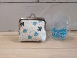 丸いフォルムが可愛い青と水色の千鳥柄が涼やかながま口です。