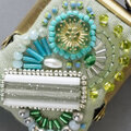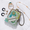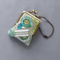 ネックレスにも、バッグチャームにも、小さな小さなビーズ刺繍のがま口 18 グリーン プレゼント アクセサリーケース