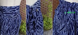 未使用の反物だった絞りの浴衣地を使用し、ワイドパンツが出来上がりました。