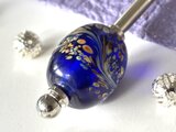 ブルーの流水の様な模様のとんぼ玉でかんざしを作りました。