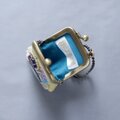 青系の色が好きで、デザインに一目ぼれして購入しました! 人と被らない貴重な一点もので感動です。これからたくさん身に着けたいと思います! お写真どおり素敵なリングで、作りもしっかりとしています。 お品物が届くまでの連絡も丁寧にしていただき、安心してお取引できました。 この度はありがとうございました。