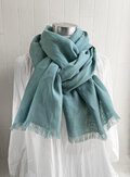 秋冬 やわらか上質ベルギーリネンのストール ピーコック 青緑