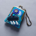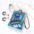 ネックレスにも、バッグチャームにも、小さな小さなビーズ刺繍のがま口 48 ブルー プレゼント アクセサリーケース
