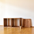円柱型のダボに合わせて棚板裏面に半円型の彫り込みを施すことでしっかりずれない棚となっています。