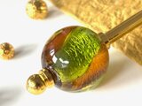 黄色と黄緑の2トーンカラーのとんぼ玉でかんざしを作りました。
