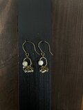 アンティークゴールドの金具にメタリックビーズとシェルビーズを使用したピアスです。