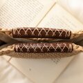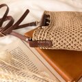 ブラウンのレザー、コットンラフィアのオートミール色と麻糸のベージュがアクセントになり可愛い感じになりました。
