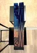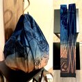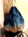 解いた浴衣をパッチワークして、藍と柿渋でグラデーションに染め上げています。