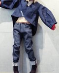 セルビッチ* デニムを使用した軽い腰ばきスタイル。
