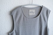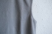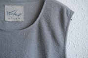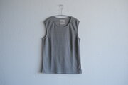 リネンの通気性の良さや柔らかさとコットンの強さを兼ね備えていて、軽く、蒸れずに、心地よい肌触りでさらっと着られます。首回りは丸首でほどよく空いていて、ノースリーブのため、着重ねの幅も広く、インナーとしてとても使いやすいです。