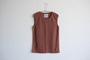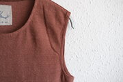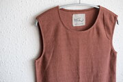 リネン80%、コットン20%のノースリーブのニット。商品名にはアンダーウェアとありますが、襟ぐりは空きすぎず、形も体の線を拾わない編み地と色、デザインパターンのため、カットソーとして着られる方も多いです。