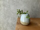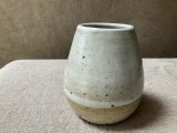 鉄分の多い赤土に上部は白釉、下部は灰釉を掛けています。