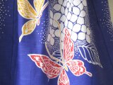 ・ブルー?青紫?地にアジサイとバタフライ柄 浴衣生地 綿100%