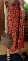 状態の良い着物解明仙の反物からシンプルワンピースを作りました。