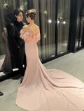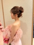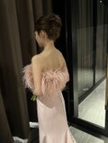実例写真!オーストリッチ カラードレス ピンク クレープ生地 ベアトップ くるみボタン 披露宴/結婚式
