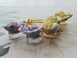 ヴィンテージ 淡黄色/磁器製・薔薇 カブトピン(Gold)